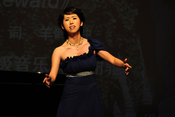 钢琴伴奏响起,艺术学院07级音乐表演系陈菲,一袭白色吊带长裙,形象清纯可人,将歌剧《费加罗的婚礼》中的一曲《哪里去了,美好时光》献给现场观众,拉开了本次音乐会的序幕。歌曲中淡淡的忧伤有力的诠释了主人公苏珊娜,对于美好时光的怀念。优美的曲调伴随着演唱者极具感染力的歌声,令一名坐在第三排的嘉宾不禁闭上眼睛,沉浸在曼妙的歌中世界。