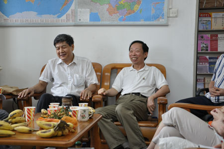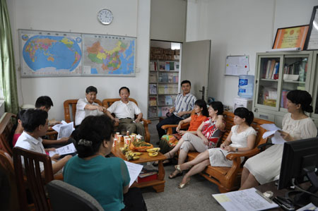 本网讯 6月17日下午,由科研处主办、《国际经贸探索》编辑部承办的学术沙龙在编辑部办公室举行。肖红主编主持沙龙,副校长董小麟,左连村、杨友孝以及经贸学院、管理学院部分师生和编辑部成员,围绕2010年亚运会对广州服务贸易的影响及对策分析展开深入交流。