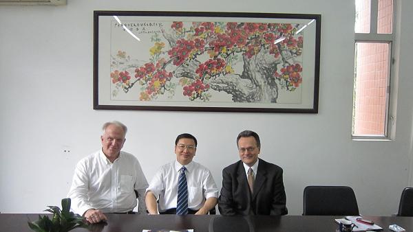 本网讯 6月21日美国南卡罗来那大学北州分校国际处副处长德莱尔霍普博士在我校美籍教师托马斯博士的陪同下来访我校留学生教育学院。留学生教育学院院长梁学宏、办公室主任吴艳、项目主管周泉与霍普博士进行会谈。梁学宏首先详细介绍了我校及学院的发展情况。霍普博士对我校的教育国际化发展战略、特色专业课程、两院两基地的建设以及留学生教育发展表示了极大的兴趣和由衷的赞赏。霍普博士也详细介绍了该校的情况,强烈希望与我校建立友好合作关系。