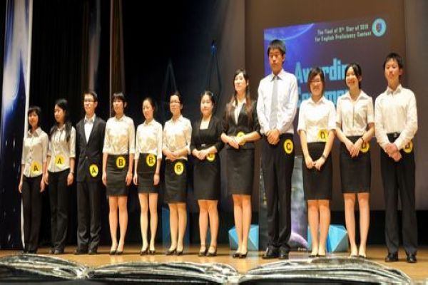 本网讯 6月21日晚7时,国际商务英语学院第九届“商英之星”英语综合技能大赛决赛在六教报告厅顺利举行。莅临大赛现场的嘉宾有商英学院党委书记谢应东,副院长郭桂杭,副院长朱文忠,副院长彭玲玲,院党委副书记骆银花以及各级辅导员等。各系主任或助理担任本次大赛的评委。
