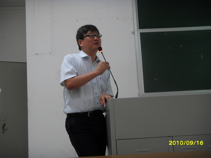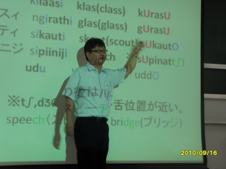 本网讯 9月16日下午,日本神户女学院大学文学部准教授、日本语言学学会事务局长田中真一莅临我校,于二教116为东语学院日语学子主讲了「諸言語から見た日本語の音声の法則」(《从各语言来认识日语的语音规律》)的讲座。日语系主任丁国旗、日语教师邱忠、赵晓靓、崔勇、庞黔林、李惠清、谭丹丹等老师也出席了讲座。
