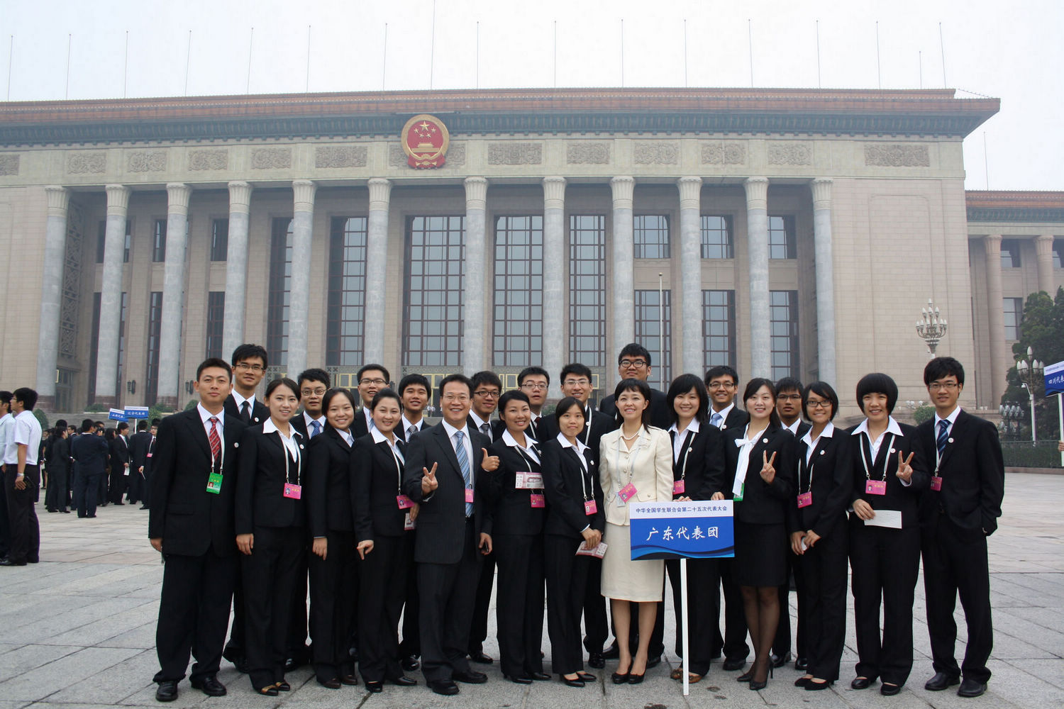 广东代表团在人民大会堂前合影,前排左二为我校刘茹楠同学