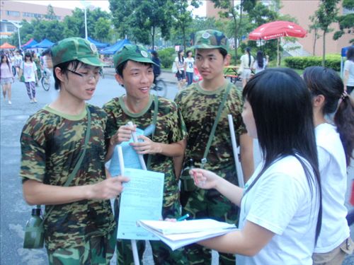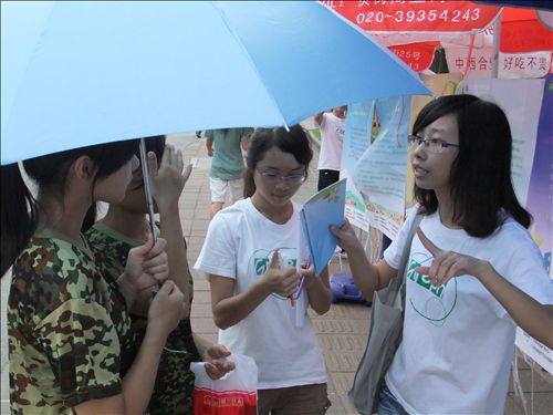 顶着炎炎烈日,广外环协的成员们开始向路人(广外大学生)宣传保护臭氧层的活动。同学们身穿环协服,手拿环保宣传册、环保签名册,他们怀着一颗爱护环境、保护臭氧层的心走到人群中,向同学们宣传保护臭氧层的重要性。