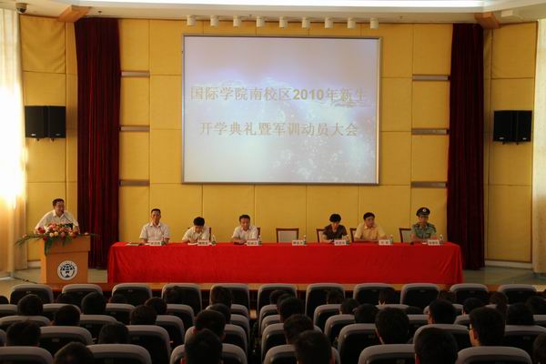 9月13日,国际学院2010年新生开学典礼暨军训动员大会在南北校区隆重举行,这标志着国际学院又有800多名新生加入广州大家庭。出席的领导有副校长顾也力、国际学院院长陈林汉、党总支书记孙亚玲、副院长魏辉良、刘明、党总支副书记林茂辉,校武装部部长助理邹春权以及全体辅导员。开学典礼由林茂辉主持。