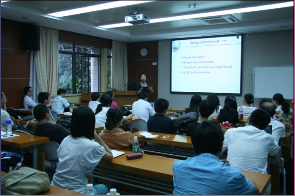本网讯 6月5日下午,花旗银行华南区人力资源经理顾玉芸女士应邀为我校MBA中心学子介绍求职面试技巧,分享交流经验。MBA教育中心主任助理马绍壮博士参加了本次交流会。交流会由职业发展中心晏雯静老师主持。