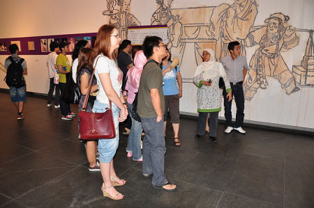 本网讯 6月4日上午,汉语国际教育中心09级秋季班硕士留学生们前往广东美术馆观看“台前幕后——广东戏曲舞台艺术展”,走近广东戏曲舞台艺术。此次展览响应第九届中国艺术节,以学术视野对广东戏曲舞台艺术进行另辟蹊径的独特阐释。展览以“台前”和“幕后”为主题词,以广东三大剧种为主体,以小剧种和稀有剧种为亮点。用动静结合的展示形式,将学术性与趣味性相结合,充分展示了广东戏曲文化的特点,从而普及大众戏曲知识,提升大众戏曲热情,培养大众了解广东戏曲的意识。