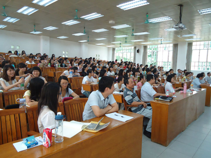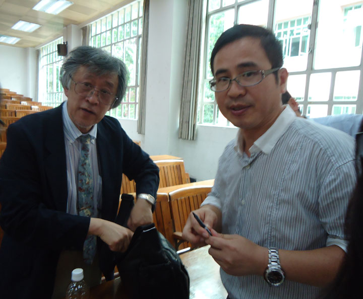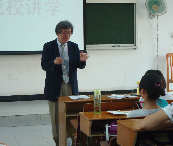 另一方面,塜本庆一先后在北里大学学习医疗卫生专业,在早稻田大学和东京外国语大学学中文。在此期间,教授“弃医从文”,著有《实用日语同声传译教程》等中日翻译届广为流传的参考教材。在讲座上,塜本庆一结合自己的学习和教学经验,给师生们提出了 “场、友、师”三个重要因素,“场”即是合理有效的课程设置及外语的交流氛围,“友”定义为相互学习,先得提高自己,认为水平上的你追我赶更能提高学习效率。他希望在课堂教学外,大家能有更多的机会了解日本的名校、名师,而且建议翻译课的老师们有的放矢地给中国的学生提供相应的翻译界重要信息。