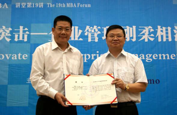 我校校长仲伟合,国际工商管理学院院长杨晓燕,MBA教育中心主任孙建军、副主任吴易明出席了讲座。仲伟合为何思模颁发客座教授聘书和礼品。