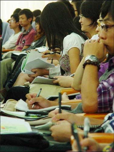 张女士不是呆板的“教”,而是提出与职场息息相关的问题让同学思考,08年以来第三次来我校宣讲的她全程与听众保持良好的互动,并对我校意念开放的氛围表示欣赏。