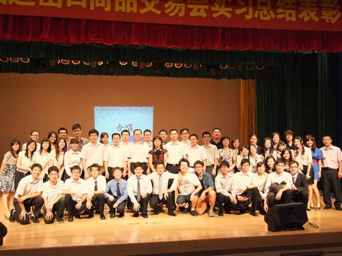 本网讯 6月8日晚,商英学院第107届广交会总结暨表彰大会在六教报告厅举行。总结会展示了商英学院07级学生在本届广交会实习的工作成果,对优秀团队与个人进行表彰。中国对外贸易中心外联处副处长刘铨东等一行八人莅临大会现场。我校教务处副处长尚敏锐,国际商务英语学院副院长彭玲玲,党委副书记骆银花等领导参加了会议。