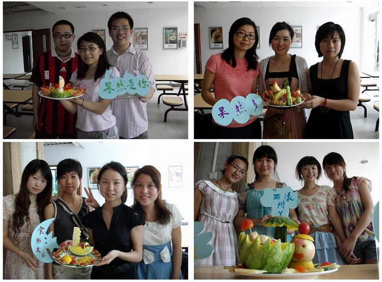 本网讯 5月30日下午,“闪硕年华2010”研究生文体嘉年华之水果拼盘比赛在北校区清雅园餐厅一楼精彩开赛。来自英文、商英、中文、欧洲研究中心等研究生培养单位的队伍各显身手,展现了一场绝妙的水果盛会。此次比赛的评委由研究生会九届二任干部陈立欣、邓佚晨,十届一任主席段佳宏、书记助理邝惠贞和云山小站代表邓培钦同学等担任。