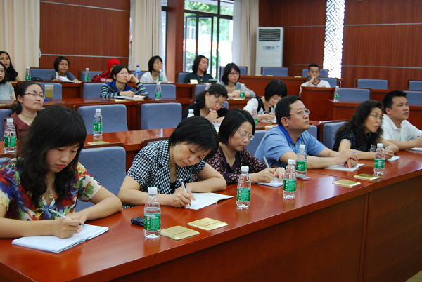本网讯 6月3日下午,全国汉语国际教育硕士专业学位教育指导委员会委员、中山大学国际汉语学院院长、博士生导师周小兵教授,为中文学院汉语国际教育中心硕士生导师和留学生们作了一场关于硕士培养的专题讲座。讲座由汉语国际教育中心主任彭淑莉博士主持。