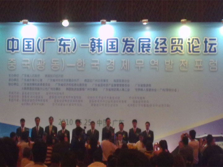 本网讯 5月25日上午,由广东省人民政府、韩国知识经济部举办的首届中国(广东)—韩国发展经贸论坛在香格里拉大酒店举行。本次论坛主题为“绿色发展,合作共赢”。广东省省长黄华华,广东省发改委副主任鲁修禄,广东省社科院院长梁桂全以及韩国知识经济部部长崔炅焕,韩国首尔大学教授郑永禄,韩国产业研究院成长动力产业研究中心所长张锡仁,韩国农业水产食品部企划调整室室长梁泰善等出席了此次论坛。我校韩语系08、09级学生参加了本次活动。