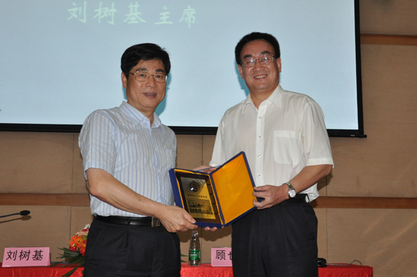 顾也力向刘树基赠送纪念品