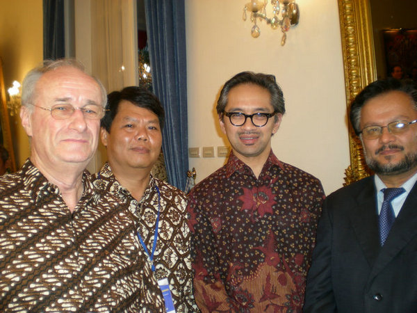 蔡金城(左二)与印尼外交部部长(右二)合影