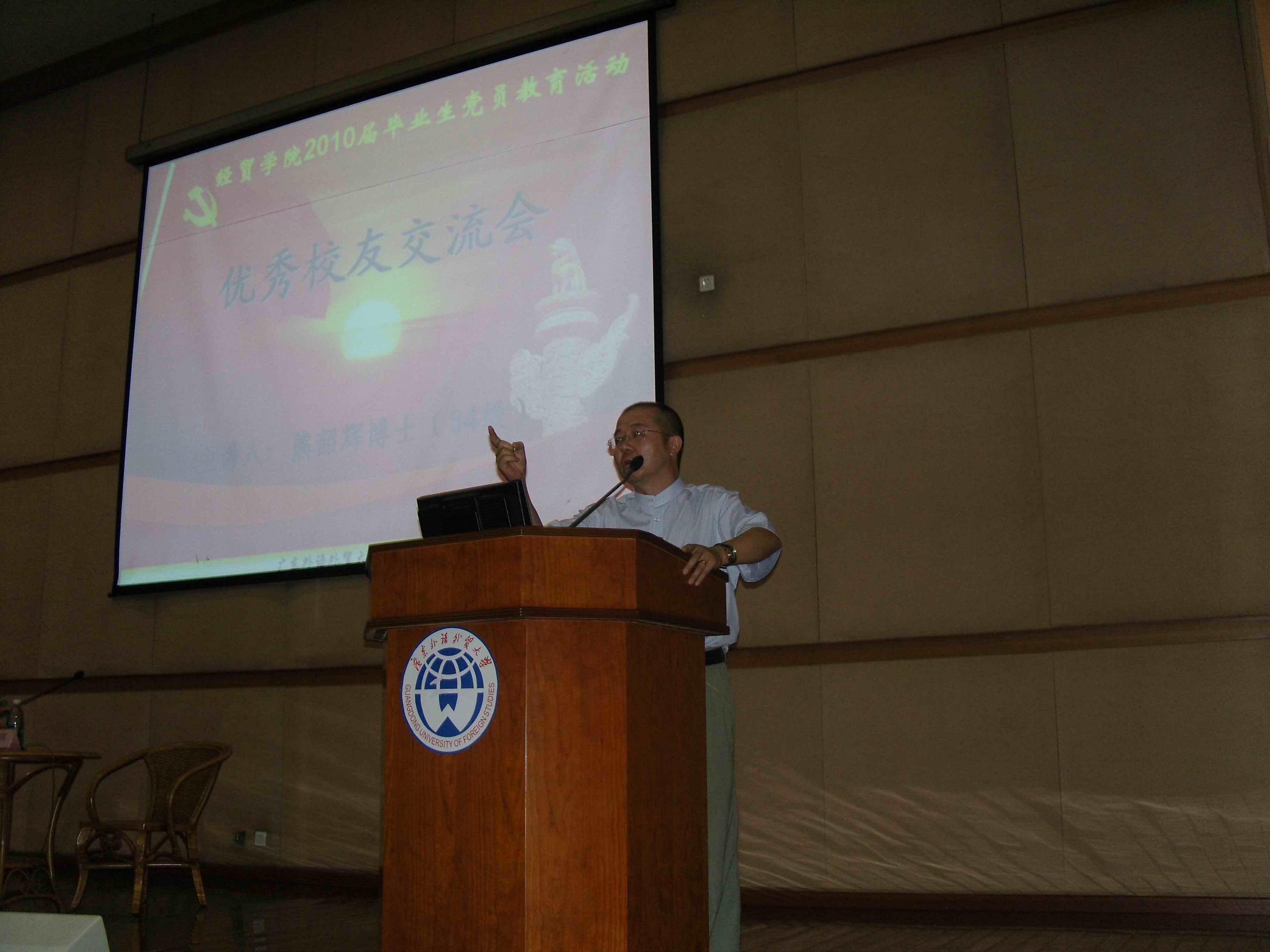 本网讯 5月21日,经贸学院2010届毕业生党员教育活动之优秀校友交流会在南校区图书馆多功能报告厅举行。学院84级校友熊韶辉博士受邀与毕业生党员分享成功经验,带来了一场思想盛宴。学院党委副书记康为茂及学工办老师参加了交流会。教育活动由陈健老师主持。