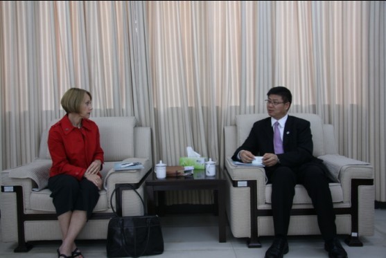 孙建军首先向Donna的来访表示了热烈的欢迎。他指出,我校MBA在目前国内全英教学项目中招生人数最多,我校正在积极寻求与国外院校合作,希望能与斯托特学院开展更广泛的合作,使学生有更多了解国际文化和拓展国际视野的机会。