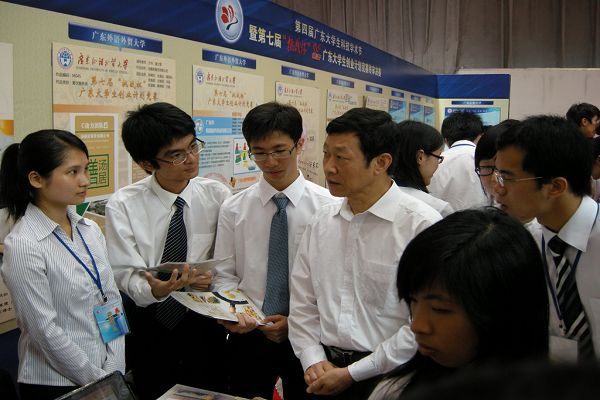 云山系列创业实体采用我校无偿提供场地,学生自主经营、自负盈亏的经营模式。从2003年我校第一个勤工助学实体云山咖啡屋建立开始,经过多年的实践探索,云山系列创业实体在秉承“济困育人,创业实践”工作理念的同时,也逐渐形成了“勤工助学、专业实习、创业实践、思想教育、就业指导、服务师生”相结合的“六位一体”的工作模式。刘玉浦在详细了解我校云山创业实体的情况后,表示认同我校云山创业型勤工助学的工作模式,并鼓励我校要继续强化“济困育人,创业实践”的工作理念。在许国彬的陪同下,省领导还参观了我校作品所在的展位。