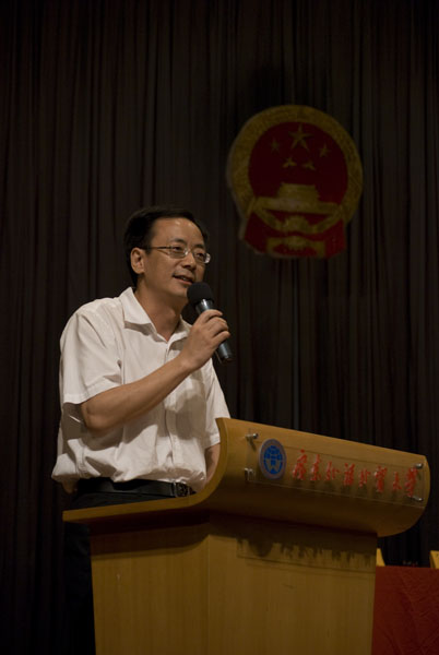 到场的嘉宾有广州市中级人民法院刑事审判庭法官翟建锋,广州市海珠区人民法院审判委员会专职委员邵山,校党委常委副校长陈德萍,法学院院长蔡镇顺,法学院党委书记金良成,法学院党委副书记卢海清及法学院老师。