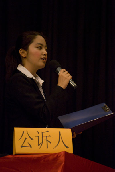本网讯 模法外人生,拟庭内神圣。5月19日晚7时,法学院2010年大陆法系模拟法庭于南校B8学术报告厅隆重举行。2010年法学院大陆法系模拟法庭为观众献上了一场集学术性、实践性、普法性、观赏性为一体的视听盛宴。控辩双方精彩交锋,证人戏剧化的精湛表演更为之增色。既是现实中的常发案件,又是司法的模糊点,传统观念与现实情况矛盾重重,是脑死亡,还是另有隐情?层层悬疑,在法庭上一一揭晓。
