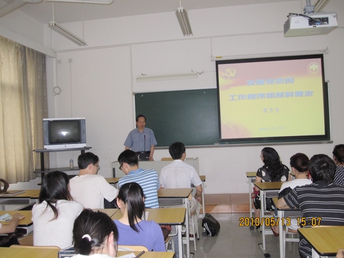本网讯 5月13日下午,由英语教育学院党委和艺术学院党总支联合举办的党员发展工作培训讲座在南校区教学楼A202顺利召开。教育学院党委副书记易宗勇,学院各党支部书记、委员,学院学生党支部的全体正式党员以及艺术学院的各党支部支委参加了此次讲座。本次专题讲座由正处级组织员、机关党委书记邱月生主讲,题为“发展党员的工作程序和材料要求”,会议由易宗勇主持。