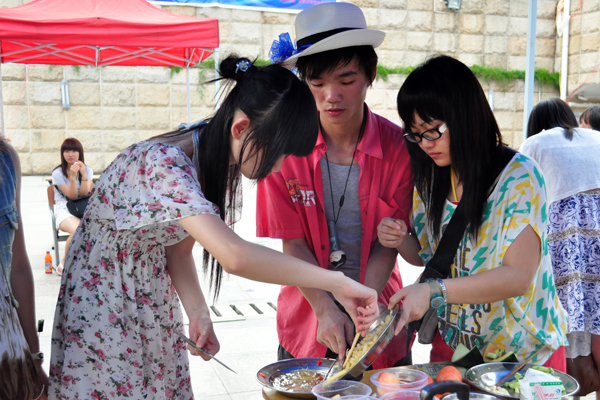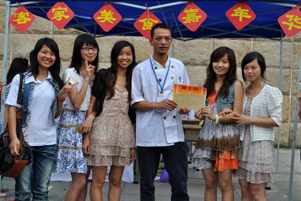 本网讯 5月13日下午三点,第四届客家美食嘉年华在南校隧道口举行。此次活动由校团委,校团联主办,广外客家文化协会承办,共有十四支参赛队伍,评委由新派客美食园代表、校团联理论调研部副部长黄蔼琳、旅游协会代表和“求是协会”代表组成。