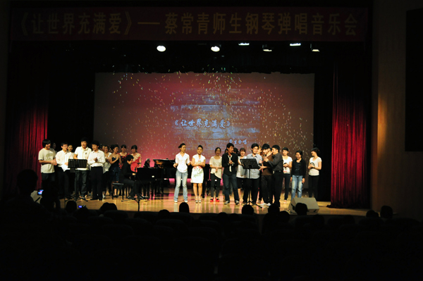 献给玉树同胞的《让世界充满爱》,是深情的呼唤,是深深的悼念,是对和平的渴求,更是对未来寄托无限的希望,同学们将对艺术的爱与玉树同胞分享。虽然我们的每个人的爱很微小,但是只要凝聚起来就是无边的力量。