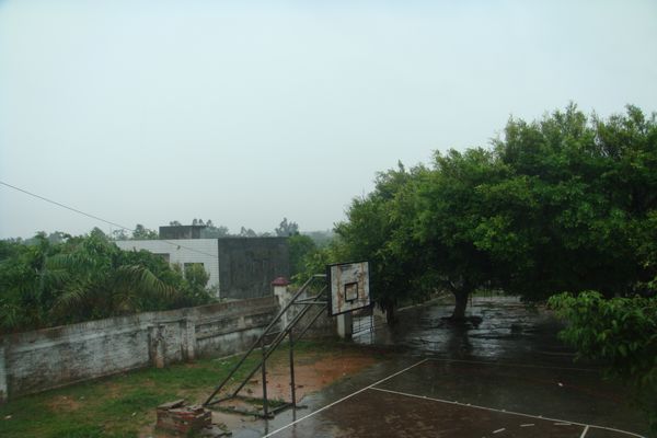 在台风肆虐中的平原小学