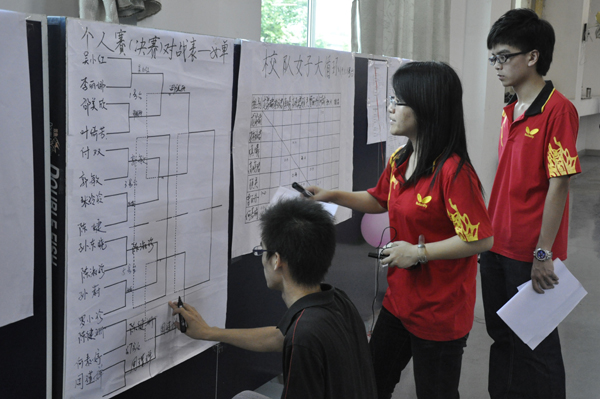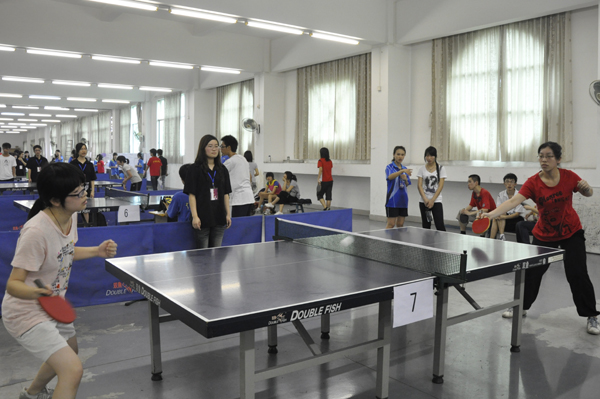 本网讯 乒乓球作为中国的国球,一直以来都是众人所关注的重要赛事之一。随着广州亚运会的脚步声渐行渐近,5月9日,2010广外亚运杯乒乓球赛在紧张而热烈的气氛中进行。来自南北校区的100多名选手齐聚北校区体育部三楼,他们用激情与汗水挥洒青春,用技术与谋略展现自我,让我们紧随记者的视线,一览他们的风采与英姿!