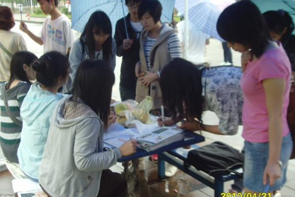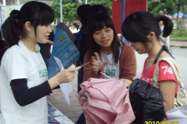 本网讯 4月19日至4月25日是广外首届环保周的系列活动时间。4月22日正值“世界地球日”,环保协会的绿色先锋们正式面向全校学生开展低碳宣传活动和水果贺卡活动。