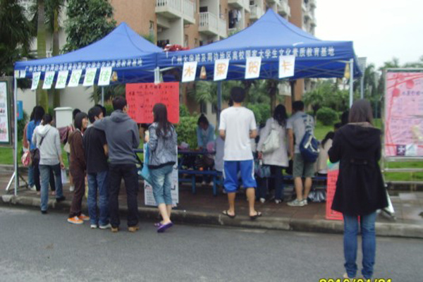 继“低碳校园活动”宣传片在全校巡播引起众多学生和老师的关注后,校道摆摊活动更是吸引了许多过往的同学。很多人停下脚步,认真地阅读宣传展板上关于“低碳”的信息。环保先锋们耐心地为同学们讲解“低碳生活”的内涵、介绍生活中如何低碳的生活小提示。同学们的热情高涨,有的还跟环保先锋们探讨环保问题。