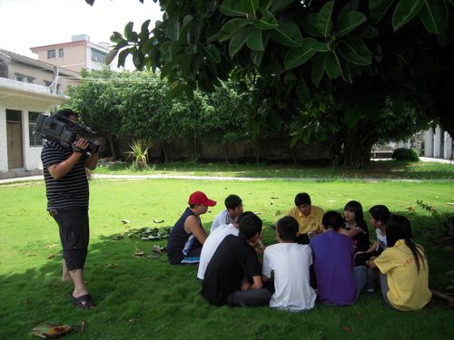 记者拍摄课外课堂情况