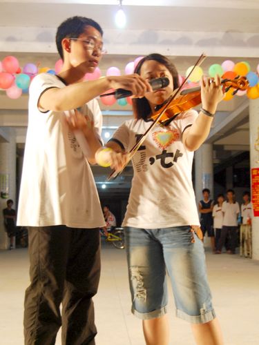 初三5班一首《我的故乡》道出了对故土的热恋;初三3班的《朋友》和初三4班的《A Little Love》则唱出了挚友之间的不舍;最后上台的Youngster队长李迪和队员胡昕的小提琴和吉他弹奏更表达了Youngster对圭岗孩子们深深的感情。