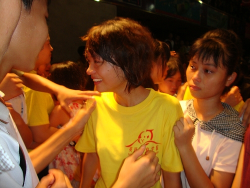 笑声之后是离愁,初中组同学用歌声表达心中对老师浓浓的不舍,一首《不想说再见》唱出心声,离别的悲伤充斥全场。至此,闭幕式接近尾声,最后的全校大合唱《和你一样》,师生互动,唱出留恋、感动和祝福。学生纷纷上台和老师拥抱握手,歌声飞扬,队旗在队长手中缓缓飘扬,领导上台宣布闭幕式圆满结束,晚会落下帷幕。
