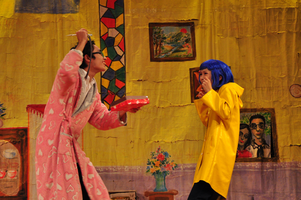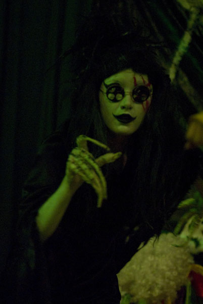 前一秒身边还充满着柔和的光亮,下一秒便置身于危险诡异的黑暗世界。时空的飞速转换在全英08剧组带来的《鬼妈妈》(Coraline)这一故事中,只需一扇神奇的门。这扇门在小女孩Coraline眼中,是逃脱现实获得欢乐的通道,她遇见眼睛上缝着纽扣,“关爱她”的“爸爸和妈妈”。画面的变化在颜色绚丽的服装和舞台灯光的映衬下,仿佛营造出一个清新动人的童话世界。但所有神奇五彩的玩偶、欢快的钢琴和热闹的舞蹈都在为之后上演的恐怖埋下伏笔。