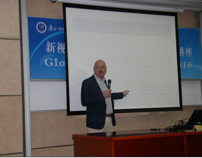 本网讯 4月16日上午,丹麦奥胡斯大学(University of Aarhus)营销学教授Dr. Klaus G. Grunert在黄华讲堂为我校MBA教育中心“MBA新视野”系列讲座做了一场名为“Decision-making, quality perception and branding”的主题演讲。MBA全日制学生、商英学院研究生及部分本科学生参加本次讲座。管理学院院长杨晓燕教授应邀参加了讲座。讲座由MBA教育中心副主任吴易明教授主持。