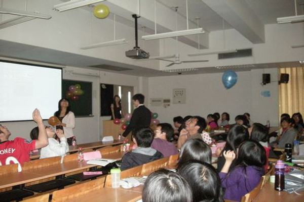 经过初赛的严格筛选,此次比赛展播的作品均有较高的质量。第一部来自092班的作品《越讲粤幸福》情节诙谐幽默,生动地展示了团结的力量,引来了观众们的阵阵笑声。094班的《爱•不灭》基调深情感人,启迪大学生要活在当下,展现了当代大学生的情感世界。最精彩的作品莫过于083班的《专四倒计时》,该作品视角独特,内容结合了近期的专四考试,演技精湛,幕后制作也堪称一流,使同学们深刻地认识到了正确面对学习压力的重要性。中场安排的小游戏将大家的视线从屏幕转移到了现场,赠送礼品和有趣的“惩罚”活跃了现场的气氛。