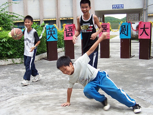 本网讯 7月30日下午,10CCTeam在河口中学教学楼前空地顺利举行了英语情景剧大赛。大赛旨在更好地拓展学生的综合素质、提高学生的审美能力、充分展示学生的文艺才能。河口中学副校长张东、政教处主任陈光彬和教导处主任刘学严以及团委书记严伟健应邀出席比赛。
