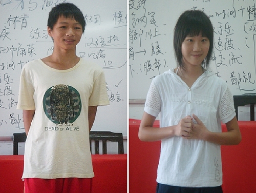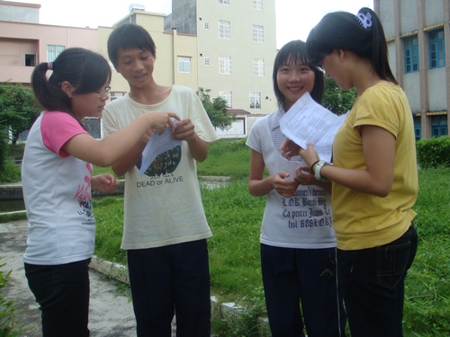 当问及第一次当主持人的感想,他们两个都笑着说感觉很新鲜。而问到主持人特训辛不辛苦时,他们都点点头,华山还开玩笑地说:“背稿子都背得想吐了。”整整一天半的时间,他们都在不断地排练,一句“Good afternoon,ladies and gentlemen!”就被反复练习过无数遍。尽管过程辛苦,但他们从未抱怨过一句。丽媛曾经告诉队员她很渴望当主持人,而这次的情景剧大赛正是给了她一次梦想绽放的机会。“我觉得我自己能做的更好,以后我一定还会努力争取”她自信地告诉我们。