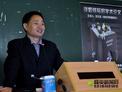 就论文的写作过程,朱文忠提出了自己的建议。他表示,论文的选题要兼顾社会实际和自己的专业领域,将研究缩小到一定范围;论文的标题要力求精确、醒目;文章的主体要逻辑清晰,每一部分都要做到承上启下,特别要注意所研究的问题与所提建议的连贯性;论文结尾要有针对性地对全文进行总结,突出重点。此外,朱文忠还就论文摘要及引言部分的写作提出了宝贵的意见。他将理论知识与自己的创作经历结合起来,深入浅出地为同学们分析了学术论文写作的精要之处。
