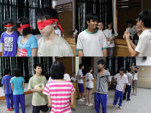 亚运知识竞赛分为传递猜词、一分钟作答题、抢答题、被风险题和超级冲锋题五个部分。在第一部分的猜词游戏中,每班派出5个人,一个人看题,另外四名代表依次一个一个地传达屏幕里的中文词必须以动作提示,到最后一个人说出答案,若答案正确或者十分接近一开始的中文词则为答题正确。在规定的五分钟内,猜出中文词最多的一组胜出该环节。派出五个男生参赛的五班经过快速的配合和一目了然的动作在五支队伍之中脱颖而出,夺得第一名。