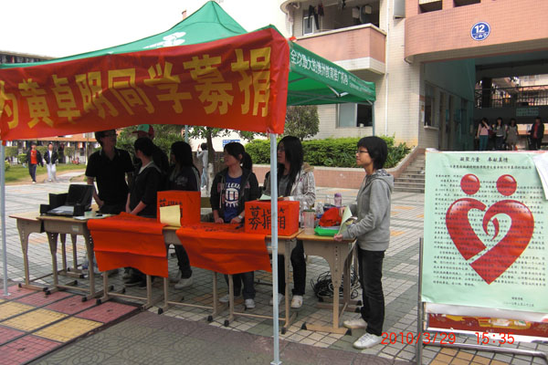 去年5月,听闻黄卓明的经历后,学校领导、机关部处、各学院老师以及广外的同学们纷纷对黄卓明伸出援助之手,开展募捐活动,募捐资金达10万余元。如今得知黄卓明前期疗程结束,将进行骨髓移植手术后,同为文化应用与传播系的同学除为其捐款外还踊跃报名参加募捐活动工作。据一位义务参与摆摊工作的同学描述,希望义务摆摊的同学数量很多,甚至因人数太多无法全员安排。