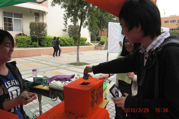 本网讯 病魔无情,但人间有爱。3月29日,为帮助白血病患者黄卓明同学,广外相思河畔、清雅园和财经学院饭堂门口处设立起了摊位开展募捐活动。据悉,募捐活动由财经学院团总支学生会、青年志愿者协会共同组织,活动从3月29日开始,历时两天,每天从早上9点30分到下午5点45分。
