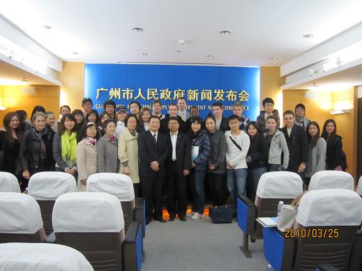 本网讯 3月25日下午,留学生教育学院院长梁学宏,副院长吴璇,教师代表郝红艳老师,院办公室周泉、王一仟以及来自11个国家的30多位留学生前往本学期“中国国情教育系列”第一站广州市人民政府外事办公室开展交流活动。市外办副主任王福春,党总支专职副书记廖小莲,团总支副书记周健,“国际两会”志愿者项目组成员陈晨出席了此次交流活动。