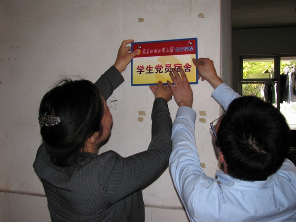 仪式结束后,苏冬燕前往学生宿舍为学生党员宿舍挂牌。