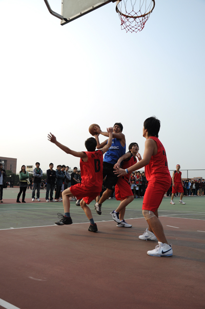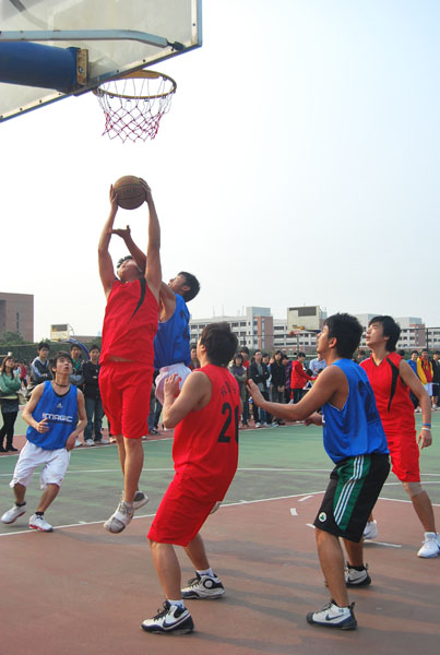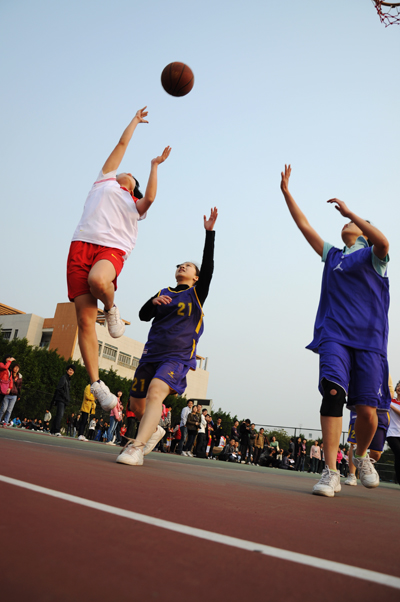 果然在第一节的比赛中,管理学院就显示出强悍的进攻能力,11号张秋茹在比赛中率先进球,并连中两元;7号林怡充分利用身形优势,深入对方篮底;而 新闻学院则只有5号高屏接应队友妙传,在禁区左侧命中篮筐,追回两分分。第一节结束时,新闻学院2:10大比分落后。