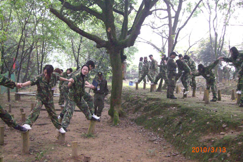 在上午的“热身”训练结束后,魔鬼级训练项目精彩上演。首先是梅花桩,这是一个挑战团队合作的项目,队员在自己保持平衡的同时还要稳住前后的队友,“瞻前顾后”,步步为营。其中,“小虎队”的队员们在尝试了30多分钟后才初见成效。