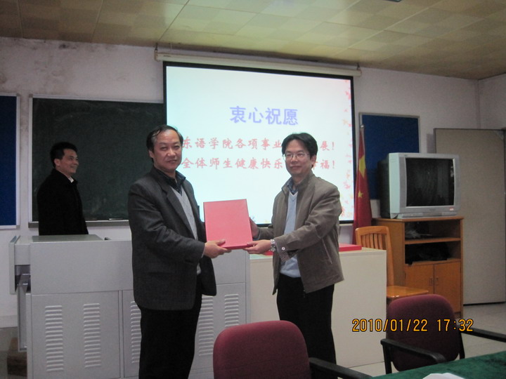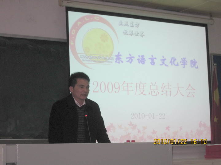 本网讯 1月22日下午,我校东语学院在学院会议室召开2009年度工作总结大会,院长韦立新,院党委书记林绍雄,副院长林秀梅、陈多友、全永根,院党委副书记郝建萍以及学院全体教职员工出席大会,会议由林绍雄主持。