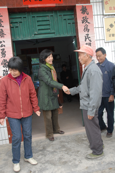 周东兰与村民热情握手
