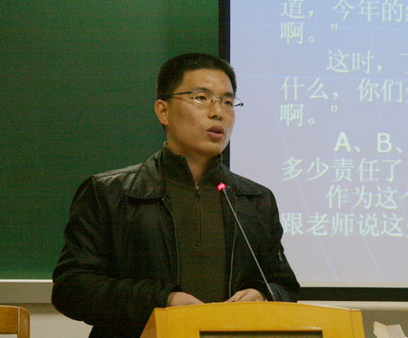 紧接着,我校团委林宏伟老师就“如何学会做学生干事”展开一场精彩讲座。林老师以大学的定义,学生干部的定位及素质要求为切入点,指出做好学生干部最重要的因素是道德商数,凡事应该德字为先,以德服人。接着,林老师就如何处理好学习与工作的关系,用自身生活故事为例告诫同学们要充分利用时间,做到工作学习两不误。期间林老师还通过“三只老鼠”、“致加西亚的信”,“周日英语学校的创办”等故事和事例阐述大学期间应当具体的几种素质即承当责任,执行工作,有效进行语言沟通及做好大学规划。幽默风趣的演讲赢得在场同学们的阵阵欢笑和掌声。